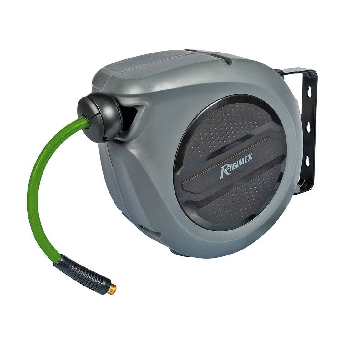 Ruota a cricchetto con sistema di bloccaggio automatico del tubo durante lo svolgimento. Avvolgimento automatico tramite molla a spirale. Rotazione 180°, tubo alimentazione da 1 mt completo di raccordi crimpati da 1/4' M. Pressione max 8 bar.