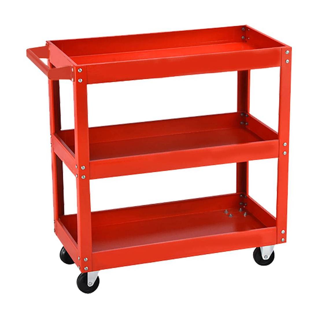 Portautensili in acciaio verniciato, spessore 0,8 mm. Capacità di carico totale pari a 100 kg. Dotato di pannello forato portattrezzi laterale, maniglia per trasporto. Con due ruote fisse e due girevoli. Dimensioni cm. 74x35xh.66. Peso 7,8 kg. Fornito smontato.