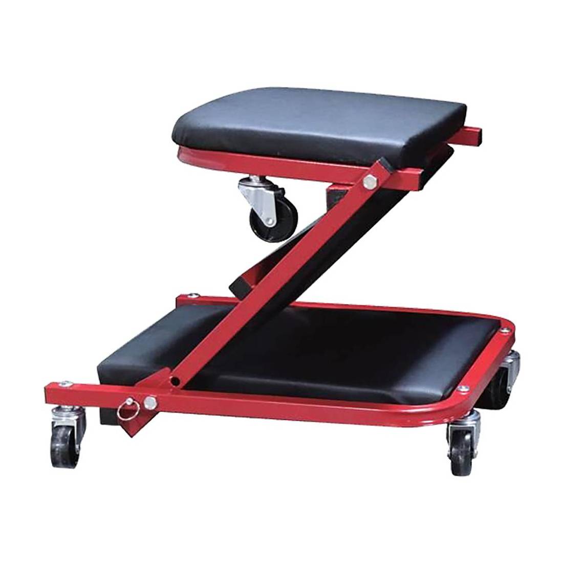 Telaio realizzato in metallo e cuscini in PU imbottiti per maggiore comfort in fase d'uso. Prodotto multifunzione: utilizzabile come sedile da meccanico grazie alla sua apertura a 'Z', oppure come carrello scorrevole per le attivita' di manutenzione meccanica. Resistente all'olio e ai solventi. Dotato di sei ruote piroettanti in PP da Ø 5 cm per la massima mobilita'. Dimensioni sgabello cm 45x44xh.38 (lxpxh). Portata come lettino scorrevole 200 kg max, come sgabello 150 kg max.