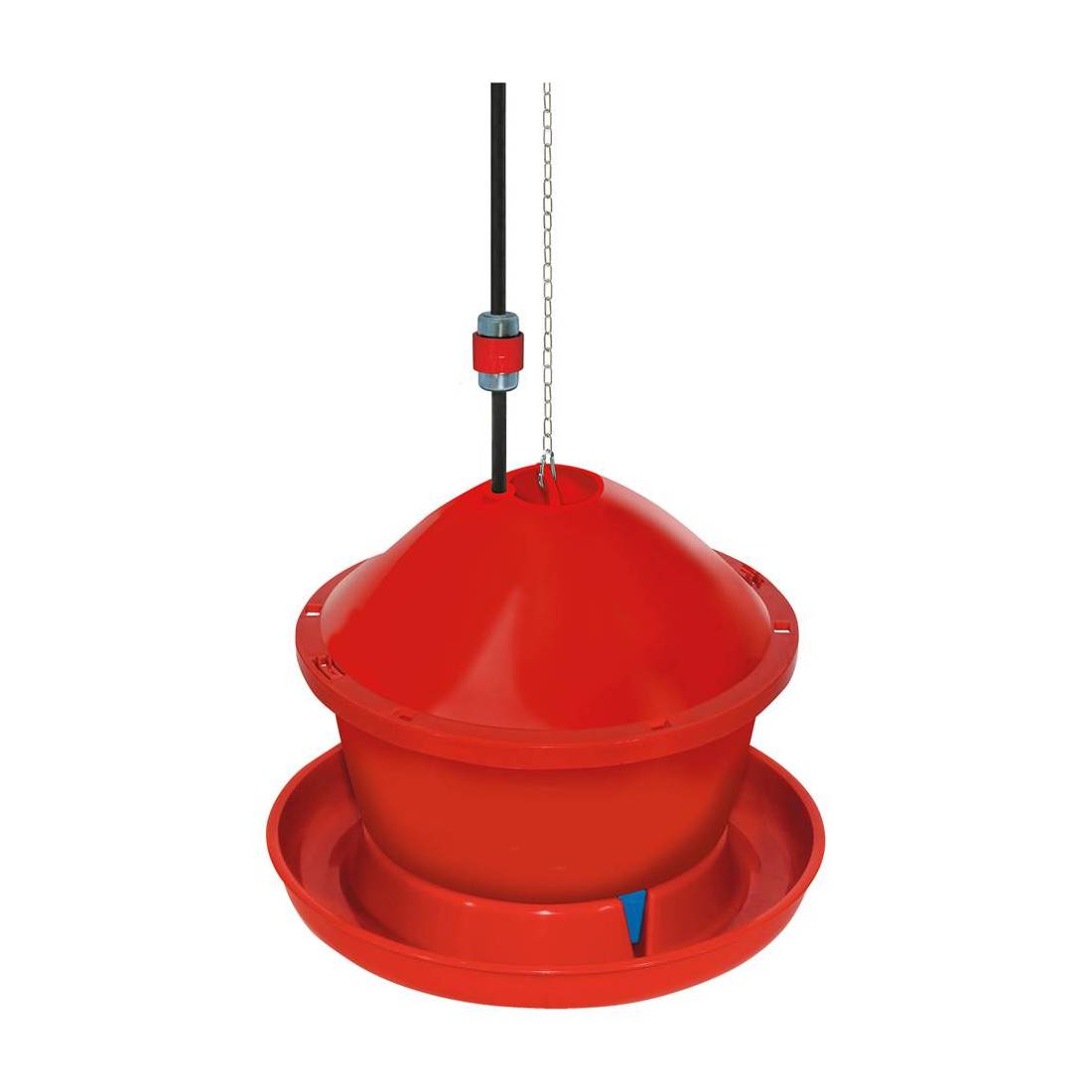 Realizzato in plastica alimentare resistente, capace di assorbire gli urti più violenti da parte degli animali. Dotato di galleggiante automatico, catenella di sospensione, filtro trattieni impurità, coperchio con sei punti di aggancio e due chiusure a scatto. Può essere collegato direttamente alle rete idrica centralizzata a caduta. Utilizzabile sia a terra che a sospensione. E' indicato per gallinacei di media e grossa taglia.