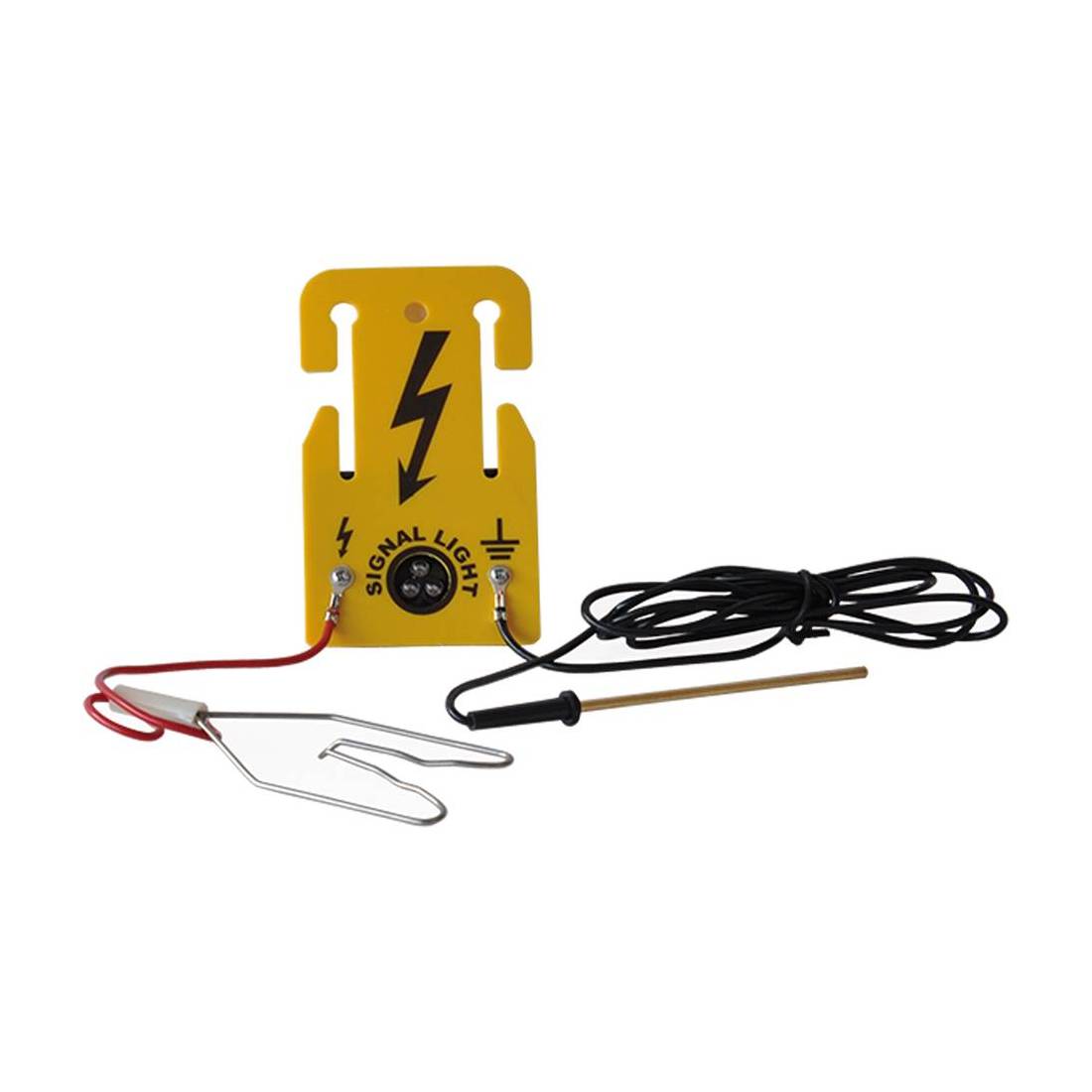 Adatta per sistemi di recinzione di piccole e medie dimensioni. Questo dispositivo lampeggia ad ogni impulso del recinto. Sotto i 3000 V smette di lampeggiare per permettere la ricerca di ciò che il recinto non può contenere. Consente di controllare le condizioni del recinto in vari punti. Non richiede batteria.
