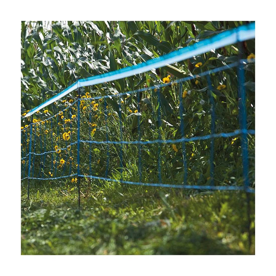 Indicata per la protezione contro gli animali selvatici, particolarmente adatta per i cinghiali. Realizzata con fili metallici TriCOND (3 file x 0,30 mm) che, oltre a garantire una conduttività cinque volte superiore ai conduttori d'acciaio, conferiscono una conducibilità ottimale anche grazie ad una piccola resistenza dei conduttori. Corredata di dodici picchetti in vetroresina blu da h.75 cm fuori terra (90 cm h. totale). I picchetti sono distribuiti ogni 4,5 mt. Rinforzi verticali blu distanti ogni 60 cm. Banda blu segnaletica superiore non inclusa.