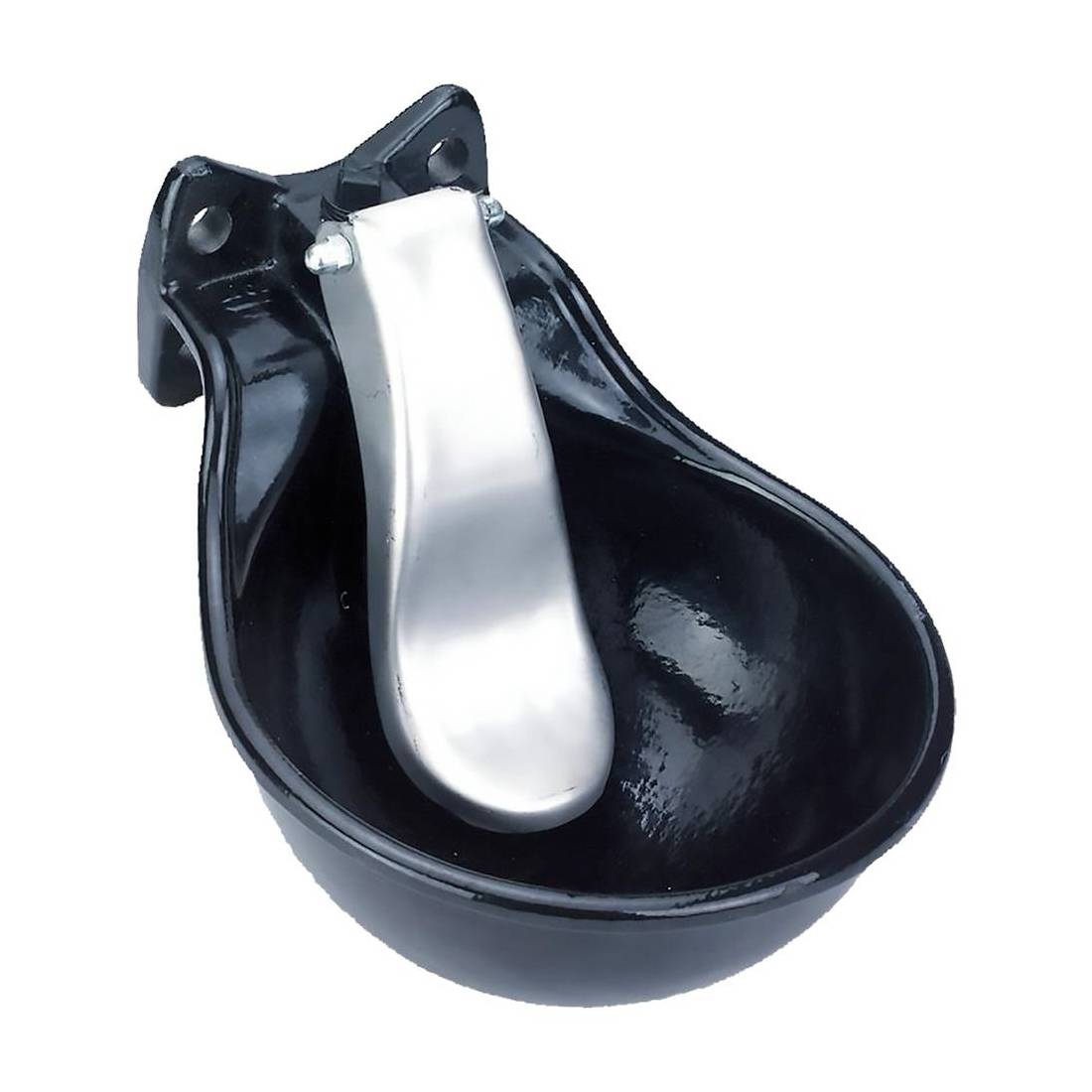 Ciotola in ghisa, capacità 1,45 lt. Verniciatura a polvere, battimuso in acciaio inox. Attacco acqua superiore ed inferiore da 1/2. Indicato per montaggio a parete o su tubo.