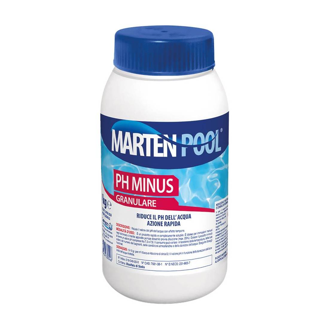 Con bisolfato di sodio. Utilizzato per ristabilire i livelli di pH con effetto tampone. Dosaggio: 5/10 gr per m3 di acqua riducono di circa 0,1 il valore pH in funzione della durezza e dell'alcalinità dell'acqua trattata.