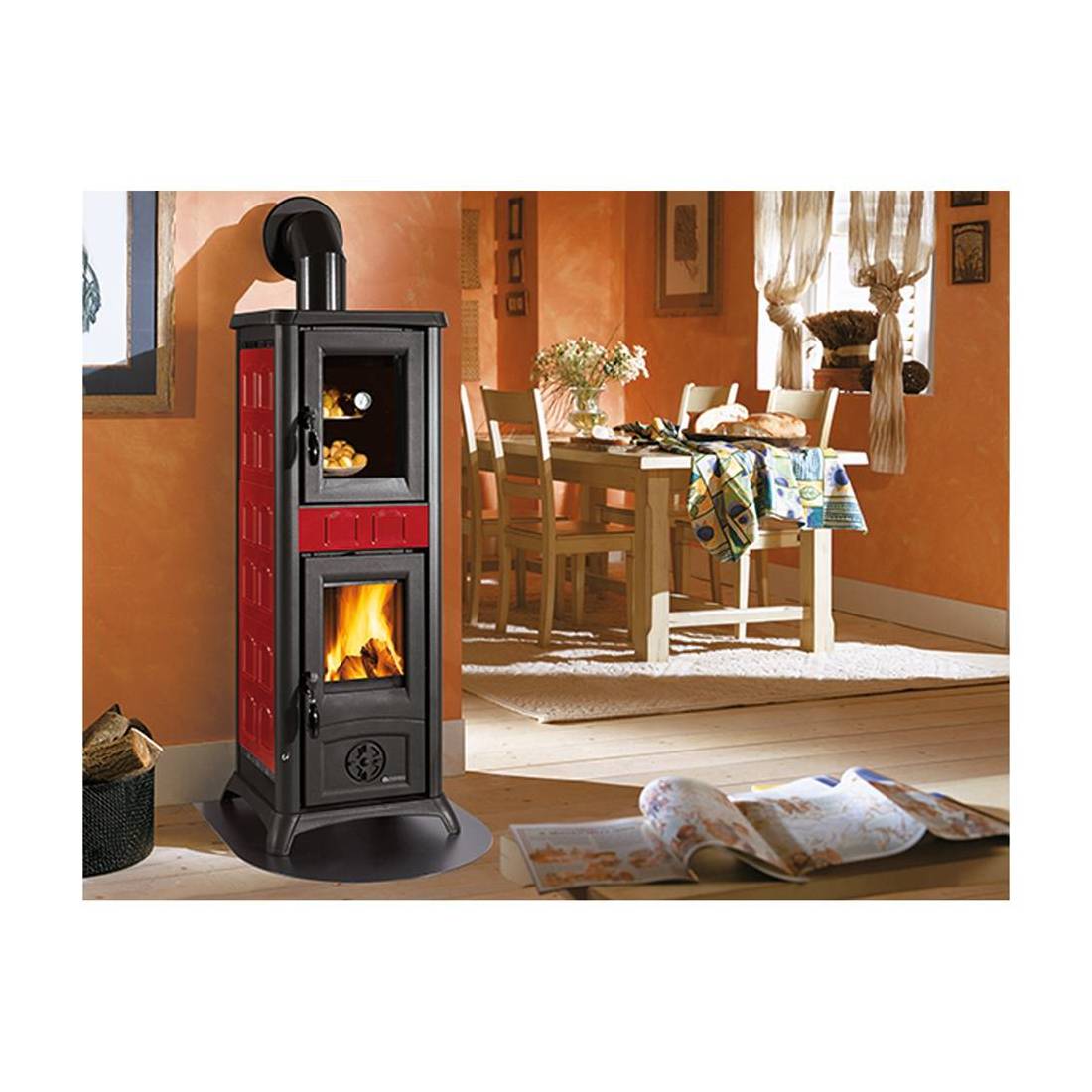STUFA A LEGNA 'GEMMA FORNO' 7,2 kW - colore bordeaux