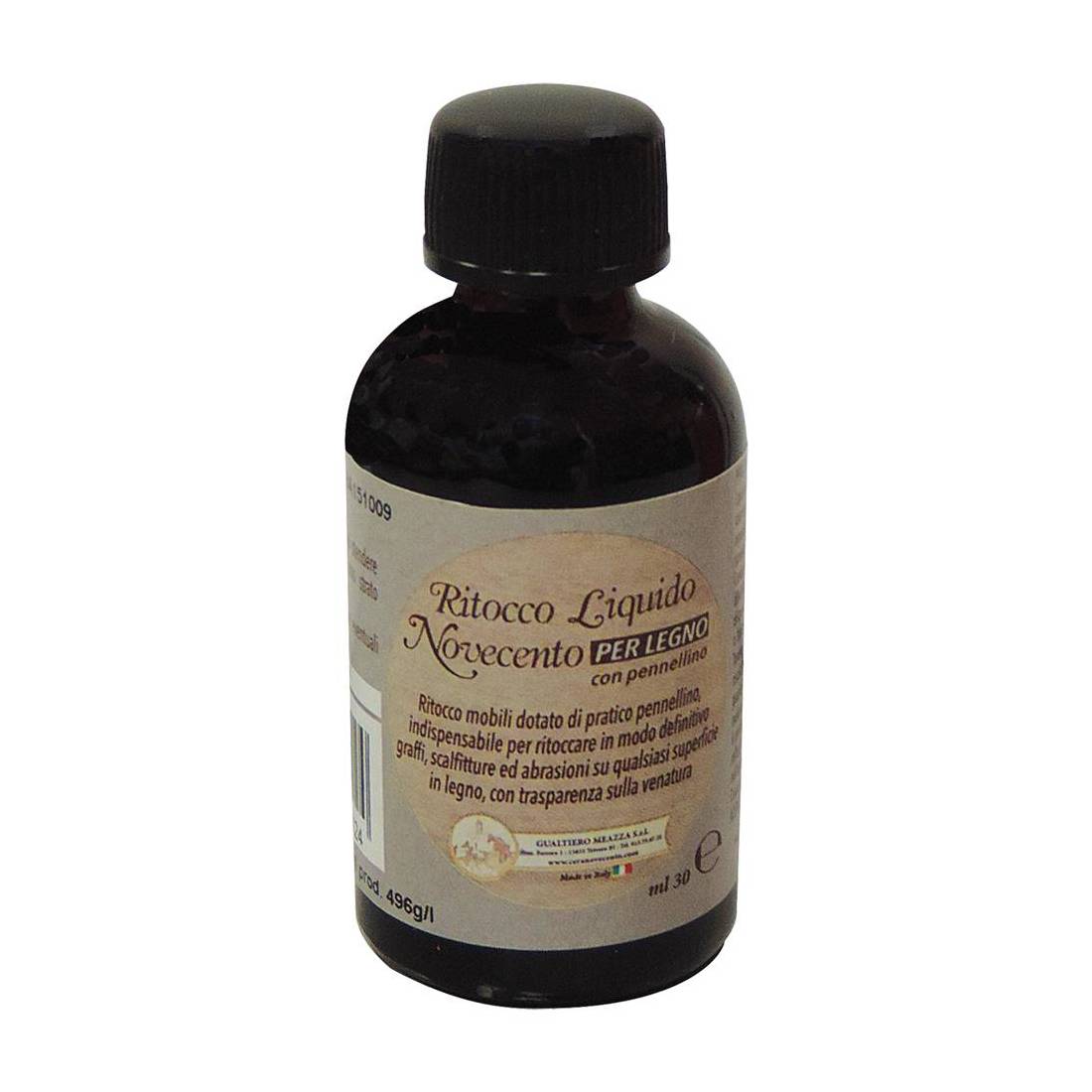 Semicoprente, indispensabile per ritoccare in in modo definitivo graffi, scalfitture ed abrasioni su qualsiasi superficie lignea. Flaconcino da 30 ml. Con pennellino.