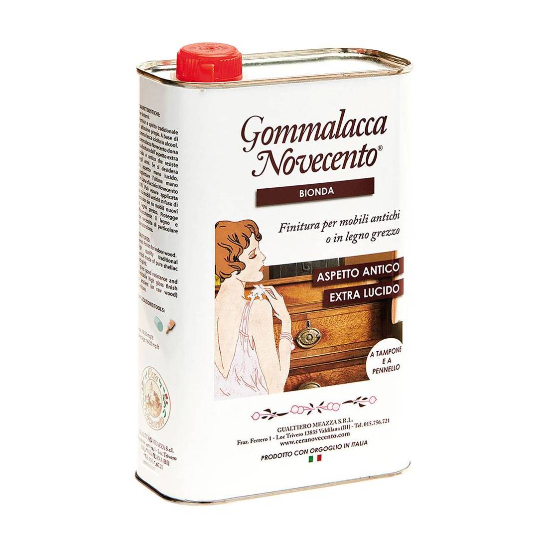 Vernice a spirito tradizionale di altissimo pregio. Puo' essere applicata su mobili antichi in fase di restauro e su mobili nuovi in legno grezzo. Protegge, conferisce un aspetto antico e finitura finale extra lucida. In latta.