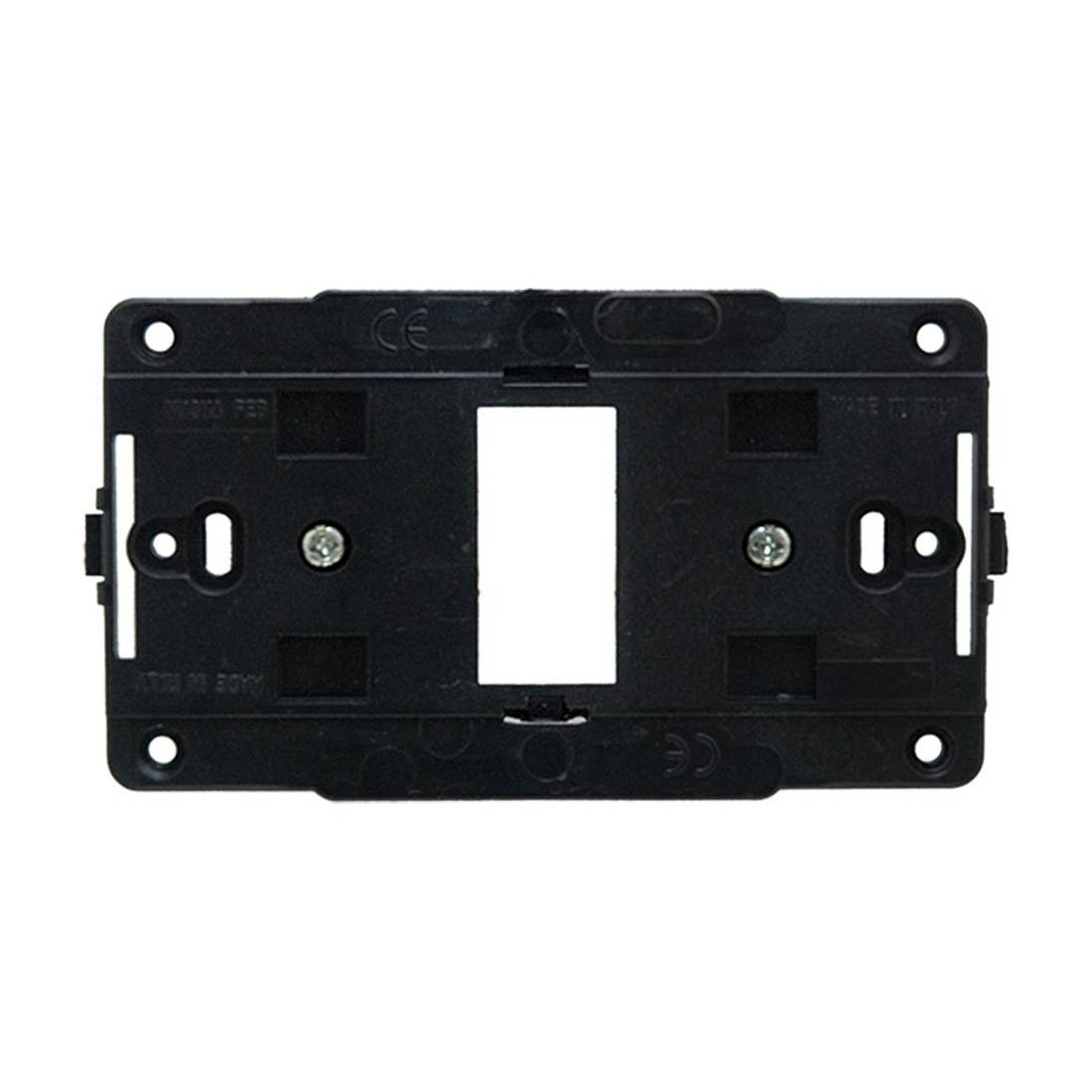 I supporto della serie laser si utilizzano con le seguenti placche Feb: Tondò, Click, Alluminio, Tocco e Legno. Dotati di graffe af espansione già montate per una veloce e pratica installazione. Realizzati in policarbonato autoestinguente di colore nero. Certificazione IMQ.