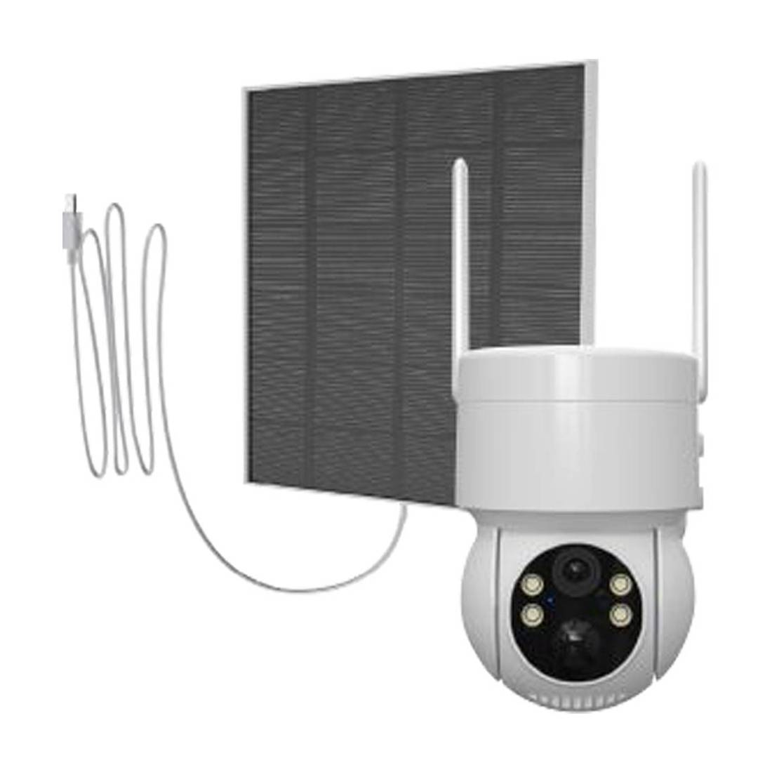 Sistema di videosorveglianza con connessione 4G da 3MP, alimentato da un pannello 5W incluso (perfetta per aree senza WiFi e senza corrente). Si connette tramite rete 4G e permette il monitoraggio in tempo reale da smartphone tramite app Tuya Smart (iOS e Android). Dotata di sensore 1/3 CMOS da 3MP, visione notturna fino a 15 m con 6 LED IR e faro attivabile da app. Supporta rilevamento di movimento con sensore PIR intelligente a infrarossi e invio di notifiche in tempo reale. Audio bidirezionale, registrazione su MicroSD (fino a 128 GB) o cloud. Alimentata da 2 batterie al litio ricaricabili. Grado di protezione IP65 (impermeabile e antipolvere), indicata per uso esterno.