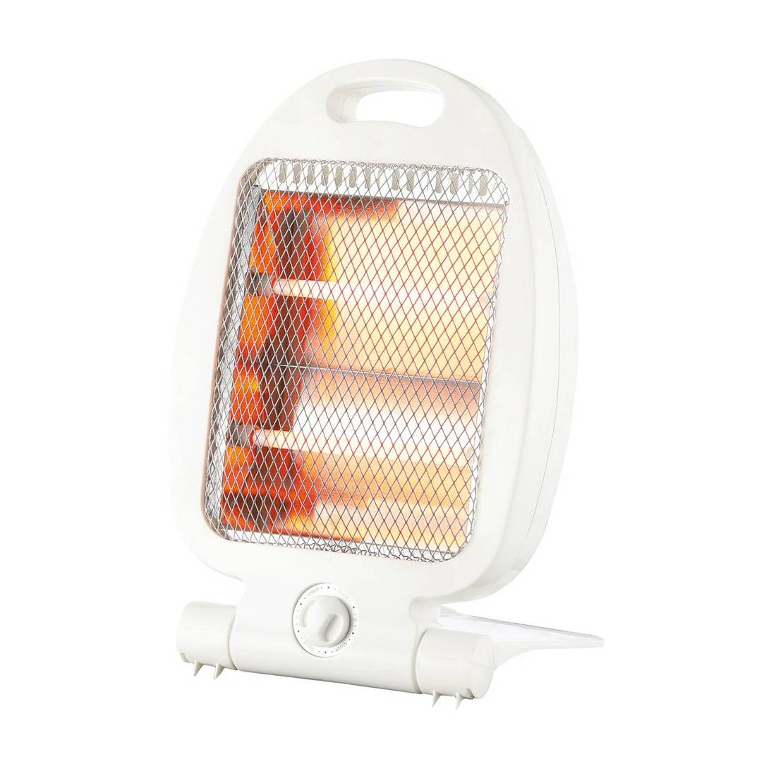 Con maniglia per presa. Griglia frontale di protezione e 2 tubi riscaldanti. Alimentazione 220-240V 50Hz. Selettore 400/800 W. Altezza cm 40.