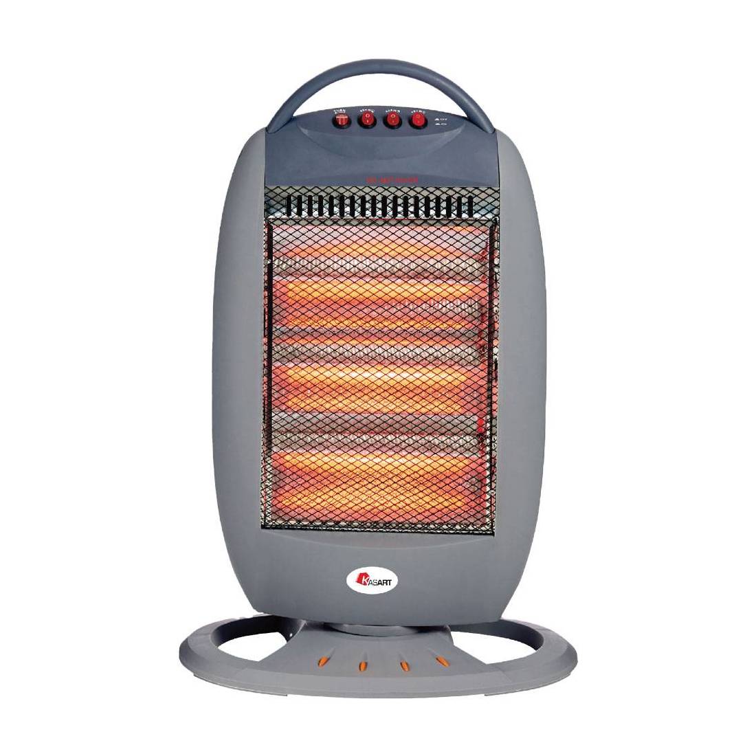 A tre livelli di riscaldamento: 400/800/1200 W, 3 tubi alogeni ad alto rendimento. Tasto accensione on/off, dispositivo di sicurezza anti-ribaltamento, con funzione oscillazione destra/sinistra. Alimentazione 220-240V 50Hz. Griglia di protezione, senza telecomando. Altezza cm 54.