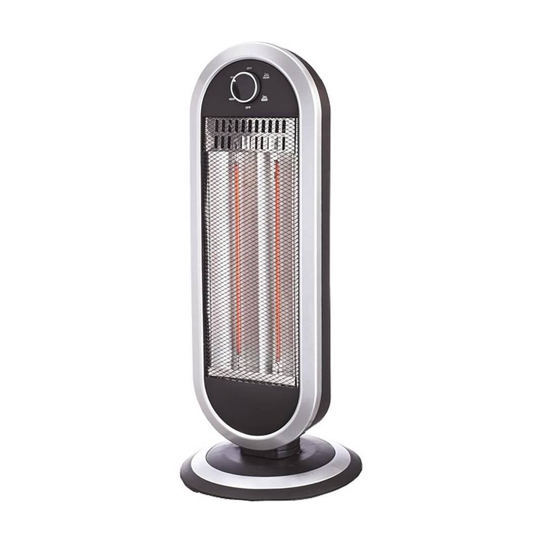 Con due filamenti di carbonio. Oscillazione automatica ed interruttore di sicurezza antiribaltamento. Grazie agli elementi alogeni in carbonio, la diffusione del calore istantanea favorisce un elevato risparmio energetico. A doppio livello di potenza: 450-900W. Alimentazione 220-240V 50Hz. Altezza cm 68.