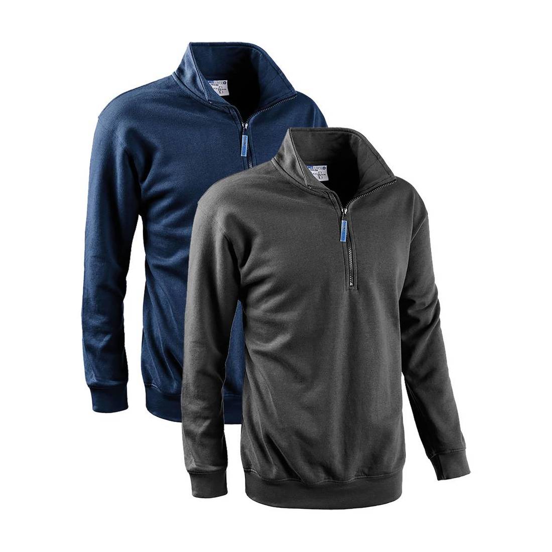 Composizione 65% cotone, 35% poliestere. Fascia parasudore interna al collo, elastico ai polsi ed in vita. Chiusura centrale mezza zip. DPI di categoria 1. Grammatura: 280 gr/mq. Stagione consigliata: autunno/inverno.