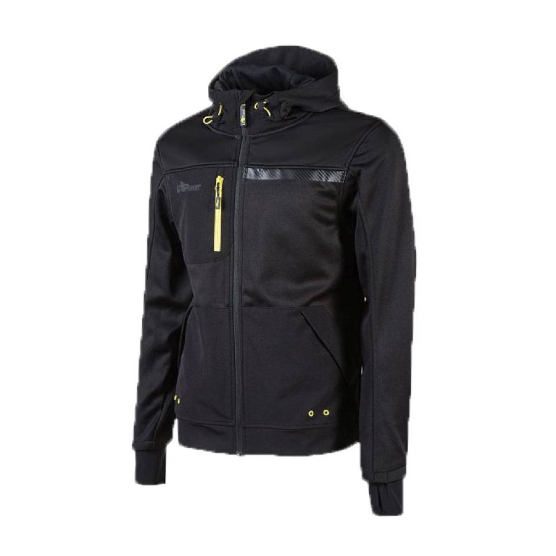 Utilizzo invernale. Tessuto principale 100% poliestere (290 gr/m2), tussuto di contrasto 90% nylon, 10% spandex (260 gr/m2). Cappuccio fisso regolabile rivestito internamente in morbido jersey 100% poliestere e fori di traspirazione all altezza delle ascelle. Tessuto traspirante, comoda e resistente, asciuga rapidamente. Dotata di due tasche con fori di drenaggio e una tasca verticale sul petto con chiusura zip.