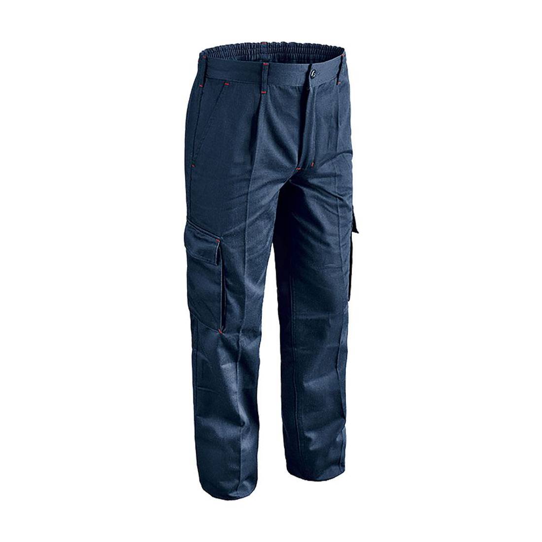 In 65% poliestere, 35% cotone. Elastico posteriore, due tasche principali, due tasche con chiusura in velcro su gambe, tasca posteriore con bottone. Chiusura con cerniera e bottone, doppia cucitura interno gamba. Peso 300 gr/mq. DPI: I categoria. Conforme UNI EN ISO 13688.