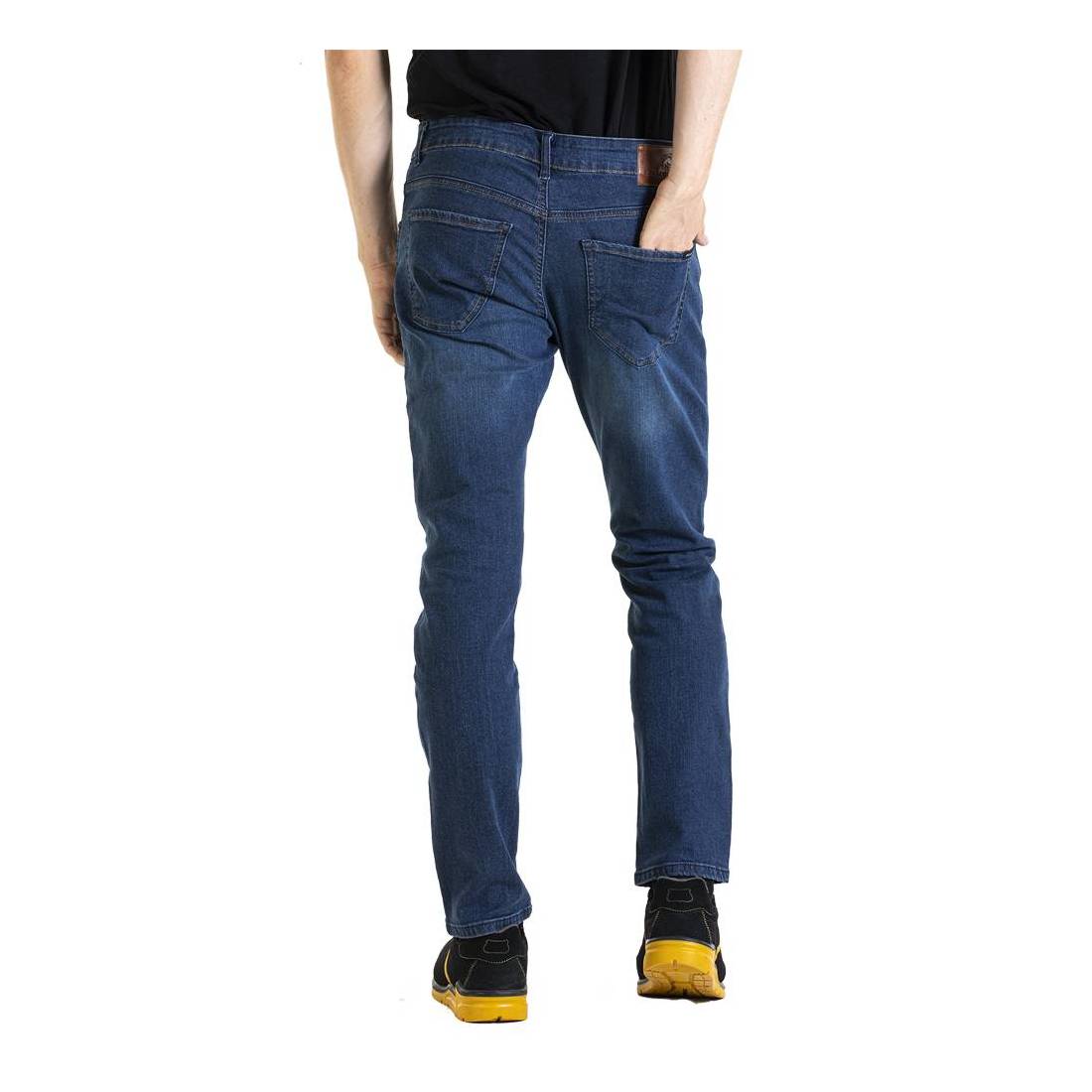 In 78% cotone 20% poliestere 2% elastane. Denim leggero stone washed con cuciture color tabacco, 5 tasche, zip, ottima vestibilità. Certificato CE, peso 305 gr/mq. Colore blu.