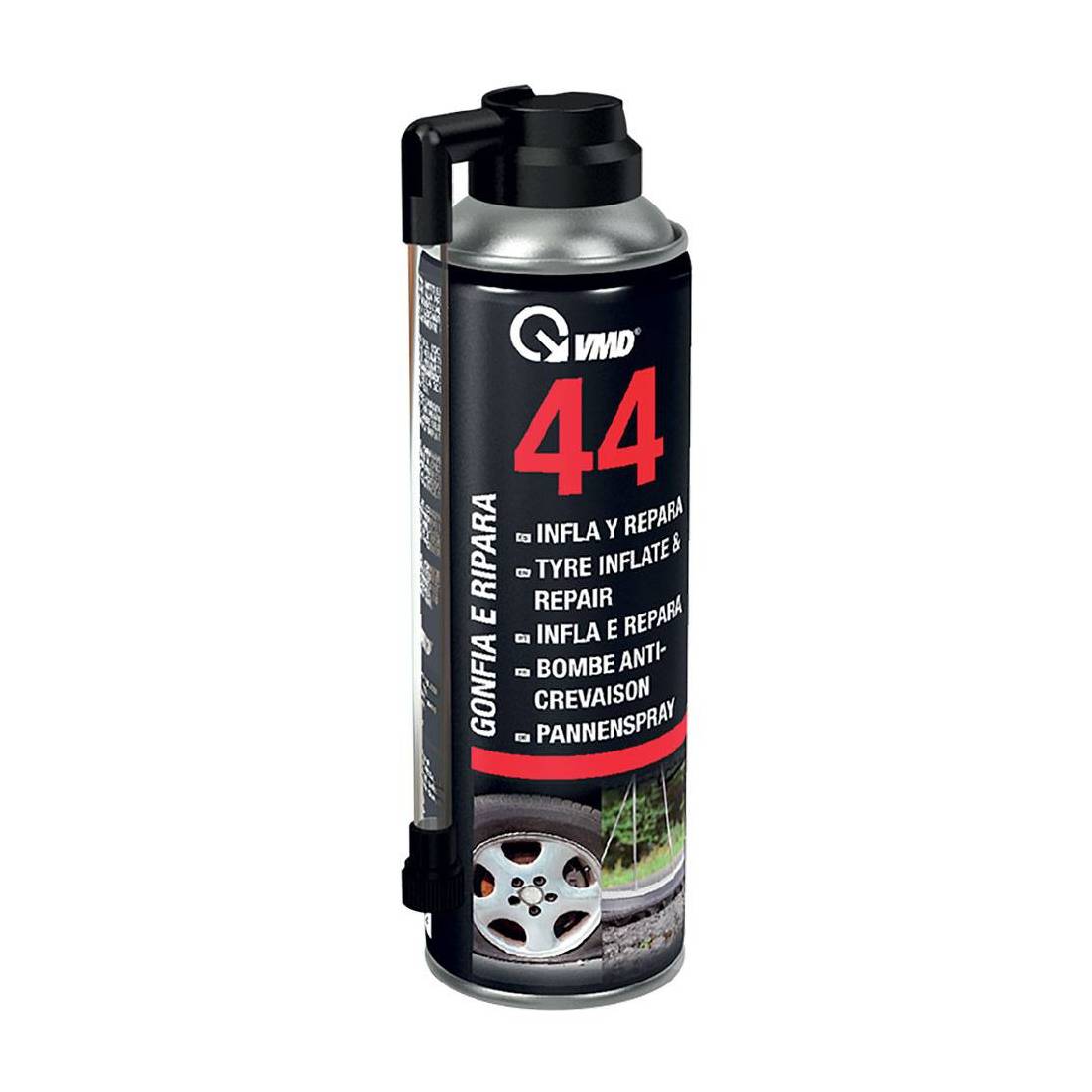 Prodotto per ogni tipo di pneumatico forato con o senza camera d'aria di auto, caravan, moto. Consente una riparazione temporanea senza smontare il pneumatico e permette di arrivare alla prima officina. Non indicato in caso di lacerazione.