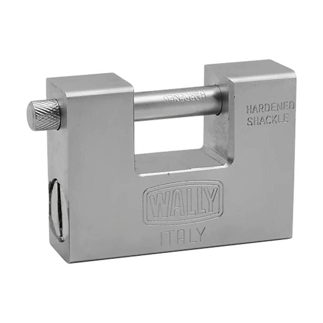 Corpo e paletto in acciaio temprato. Completo di 5 chiavi punzonate.