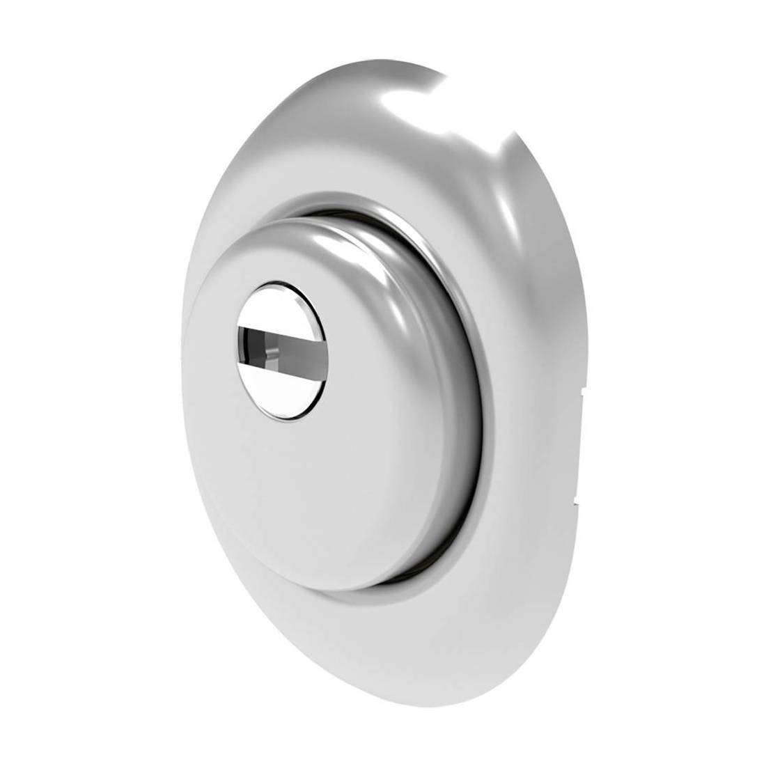 Installabile sulla maggior parte degli spessori porta grazie al sistema di fissaggio a molla, altezza regolabile da 12 a 22 mm. Rondella rotante in acciaio con feritoia entrata chiave 5 mm, fissaggio M6. Protezione livello A (due sfere d'acciaio a difesa del corpo cilindro e due sfere a protezione delle viti di fissaggio). Interasse 38 mm. Completo di mostrina in lamiera mm 70x90.