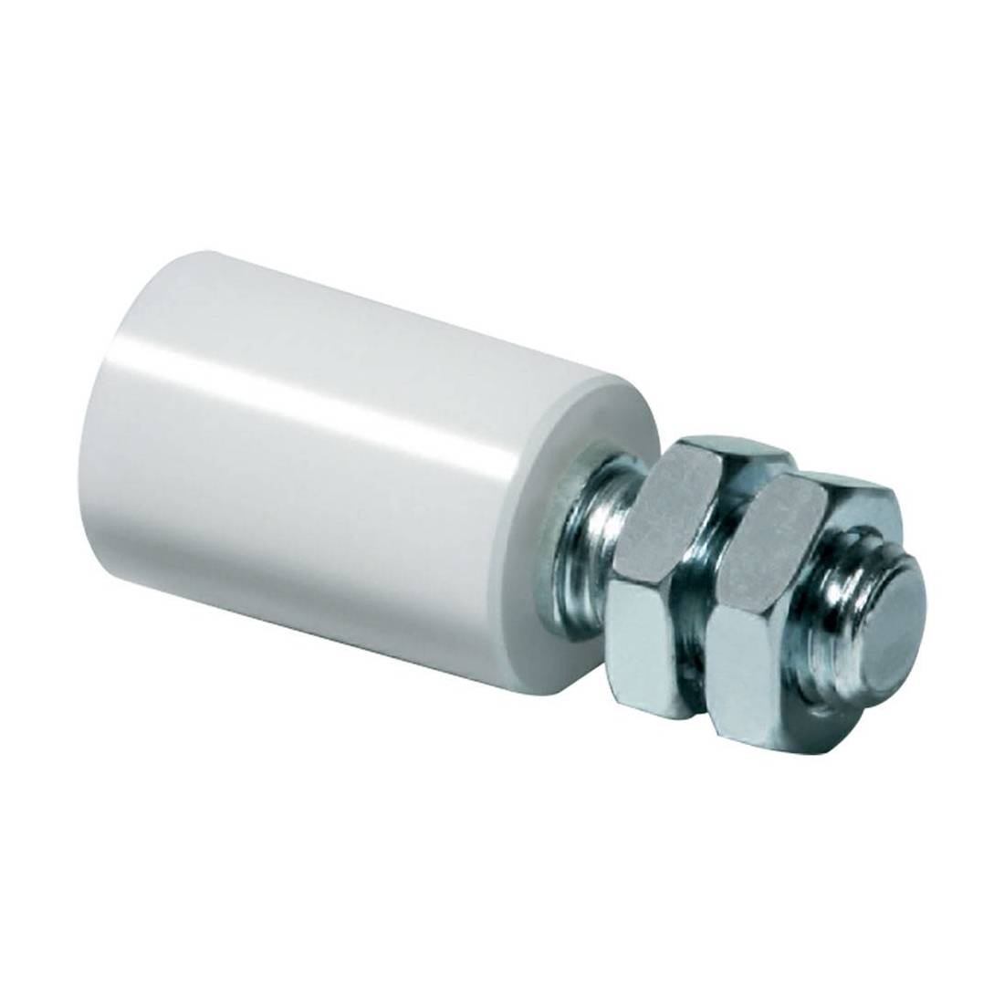 In nylon, perno zincato. Per cancelli scorrevoli. Misure espresse: A = lunghezza rullo plastica, D = lunghezza totale.