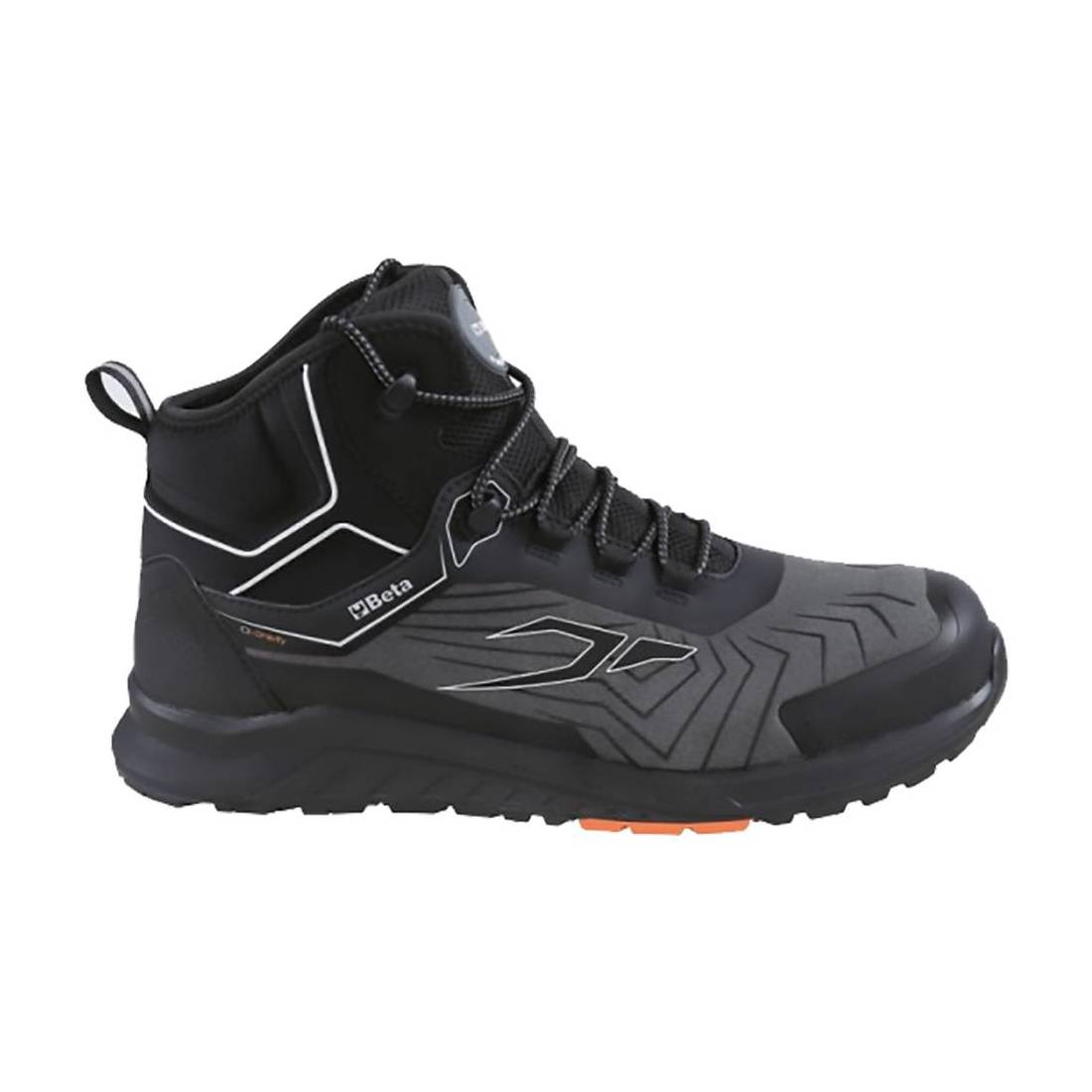Tomaia in microfibra idrorepellente con inserti in TPU. Super leggere '0 Gravity', supporto di stabilità tallone, collare 'slip on' elasticizzato per facilitare la calzata. Intersuola in EVA, battistrada in gomma nitrilica ad alta resistenza. Puntale in materiale polimerico, resistenza 200 Joule. Antiperforazione in fibra composita con trattamenti ceramici, sottopiede EVA FOAM con cuscinetto ammortizzante nella zona del tallone. Prodotto completamente metal free. Grado di protezione S3.