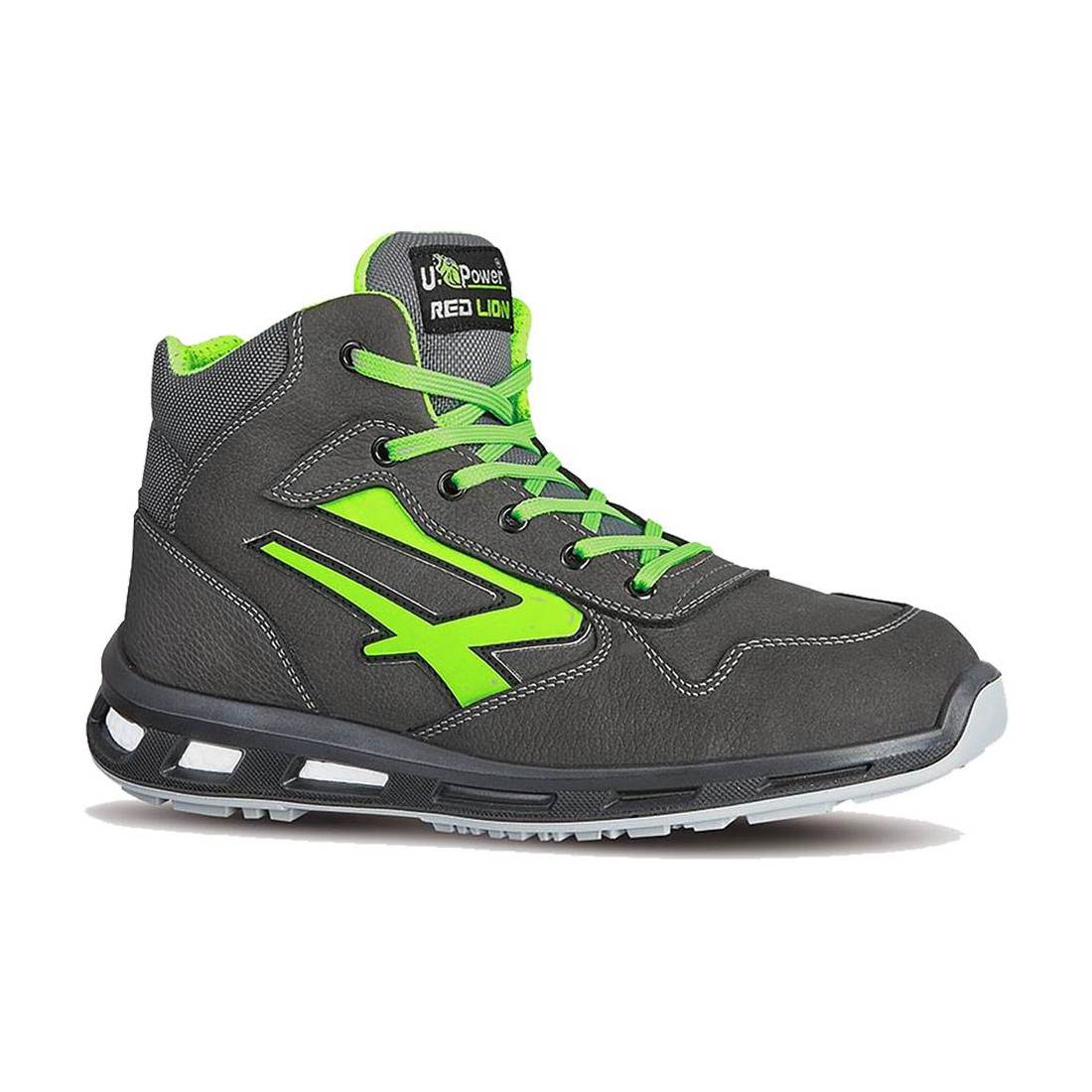 Tomaia in pelle nabuk naturale, soffietto in nylon imbottito. Fodera wingtex a tunnel traspirante. Copri sottopiede anatomico in poliuretano soffice, intersuola in PU espanso. Puntale in 'airtoe aluminium', antiperforazione 'save&flex plus', soletta antiperforazione tessile 'no metal'. Battistrada PU compatto antiabrasione, antiolio, antiscivolo e antistatico. A norma EN ISO 20345:2011 CE. Grado di protezione 'S3'.
