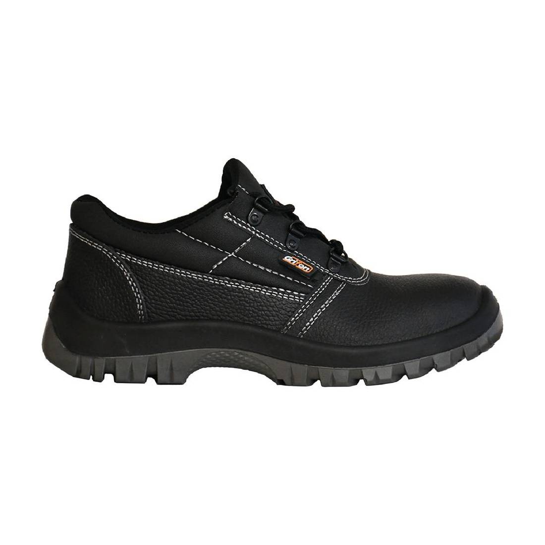 Tomaia in pelle pigmentata, lavorazione iniettata. Puntale ed inserto antiperforazione in acciaio. Suola in poliuretano con rilievi, resistente ad idrocarburi. Zona del tallone chiusa, assorbimento di energia nella zona tallone. Proprietà antistatiche, plantare estraibile. Conforme alla normativa EN ISO 20345:2011. Grado di protezione 'S3'.