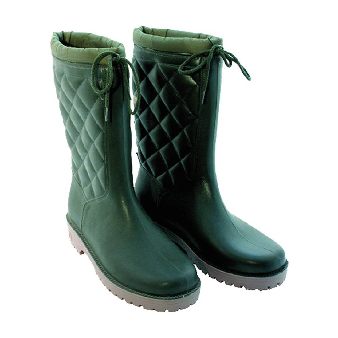 In PVC. Imbottiti con pelliccia, suola carrarmato. Colore verde.