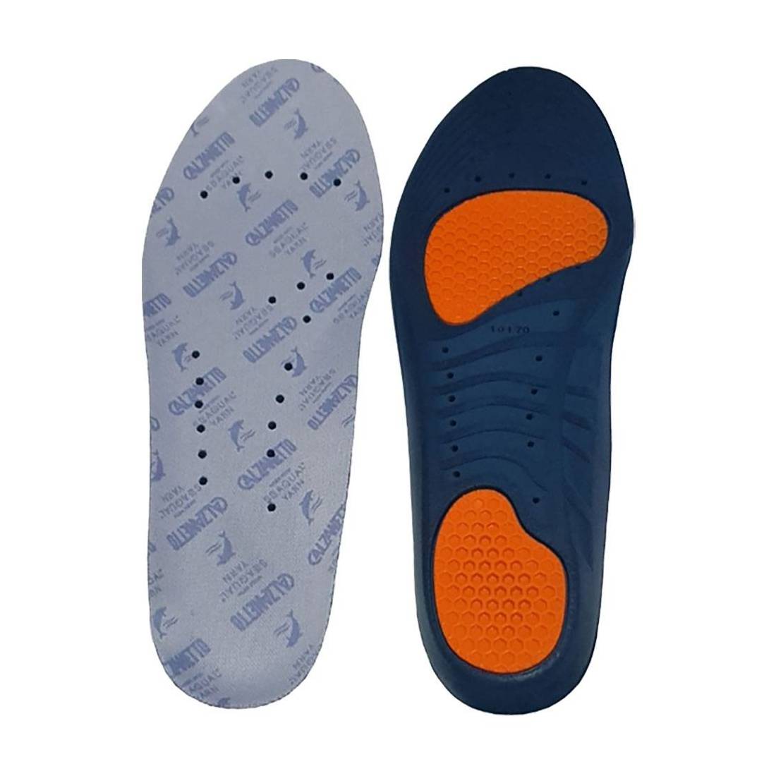 Realizzata in tessuto con seaqual yarn riciclato. Svolge azione defaticante per gambe e piedi più leggeri e riposati. Studiata per essere indossata con scarpe e stivali da lavoro e donare comfort, sollievo e sostegno costante durante tutta la giornata. La sua forma anatomica garantisce corretta postura del piede. Arco plantare sostenuto e tallone protetto da area sagomata che impedisce al piede di basculare per migliore stabilità e protezione di piede e caviglia. Gli inserti in gel con densità e profilo differenziati svolgono azione propulsiva per il metatarso e antishock per il tallone. Tessuto traspirante antibatterico antiscivolo, mantiene i piedi freschi e asciutti, evitando i cattivi odori responsabili della proliferazione batterica.