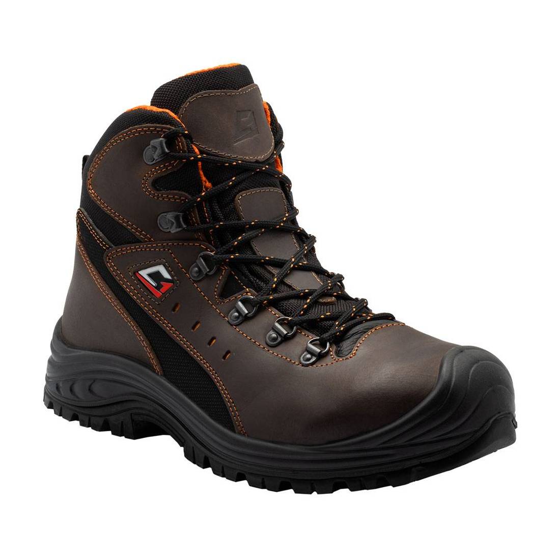 Tomaia in pelle pieno fiore, fondo in poliuretano bi-densita' resistente all'abrasione. Puntale in acciaio e lamina antiperforazione in composito. Adatte per edilizia pesante, carpenteria pesante, settore siderurgico, agrario, asfaltistico. Robusta e resistente. Protezione 'S3'. Colore marrone.