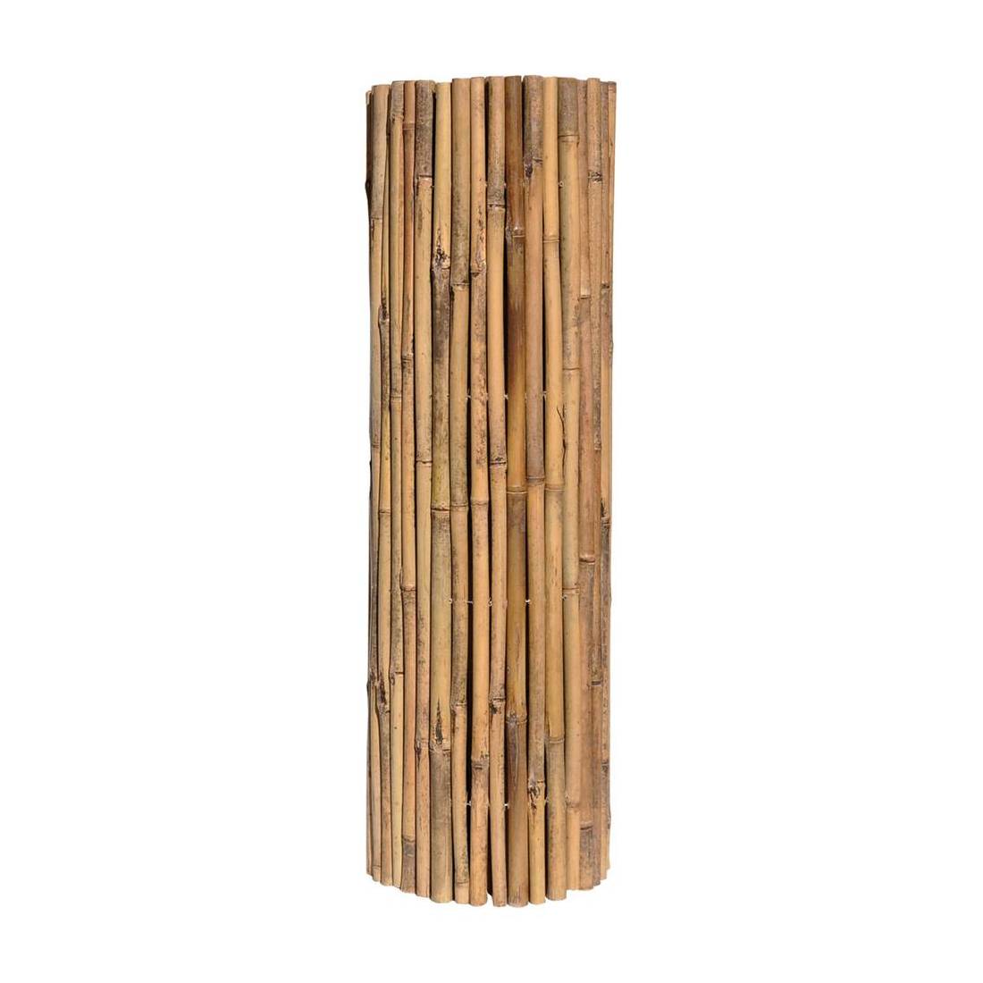 In cannette bamboo Ø 14-16 mm, rilegate con filo metallico passante.