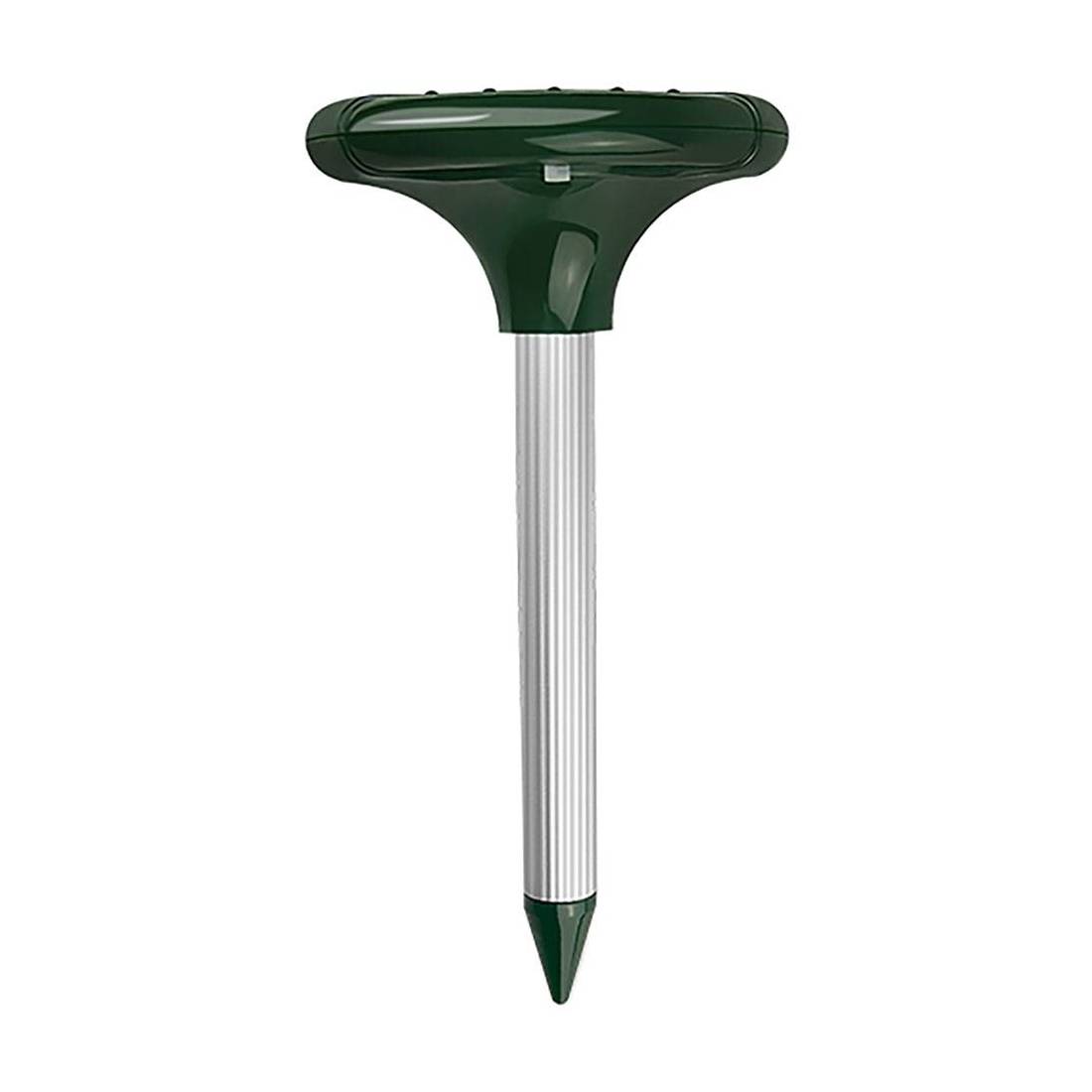 In ABS+tubo di alluminio. Alimentazione ad energia solare e con 1 batteria ricaricabile AA (inclusa). Potenza del pannello solare: 4,5 V/45 MA. Pannelli solari 90x70 mm. Funzione: Sonic+ vibrante Frequenza: 400-1000 Hz. Colore verde/argento. Cerificazione CE RoHs, protezione IPX4. Dimensioni: cm 15,3xh.34, tubo 2,9 cm.