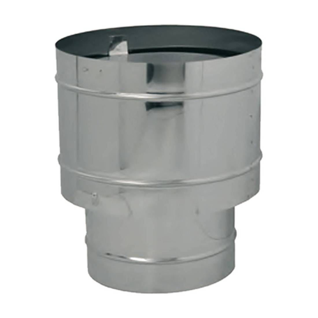 Elemento terminale della canna fumaria con disco anti-pioggia, usato come protezione dalle intemperie. In acciaio inox AISI 304. Attacco maschio. Base Tonda.