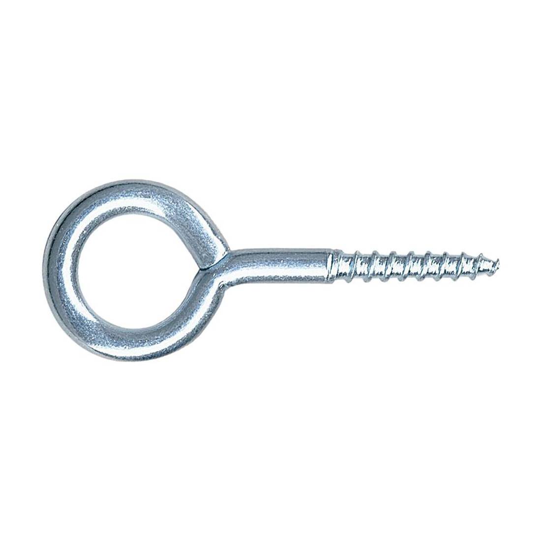 In ferro zincato, filettatura a legno tornita. Dimensioni espresse: D (diametro occhiolo), L (lunghezza gambo), d (diametro filo).