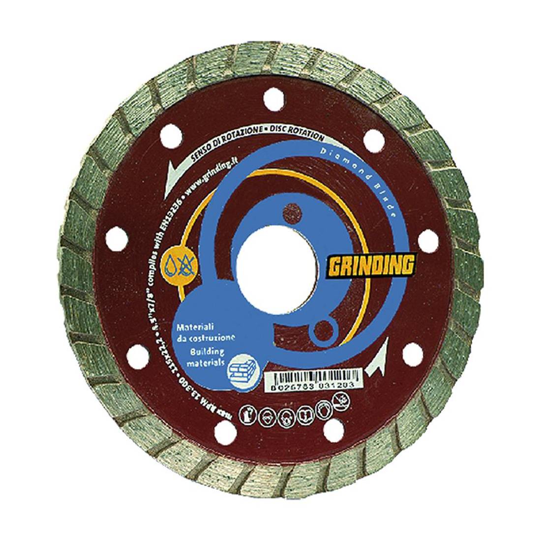 Tipo universale. Turbo, corona continua. Idoneo per mattoni, calcestruzzo, porfido, granito, tegole. Foro mm 22.