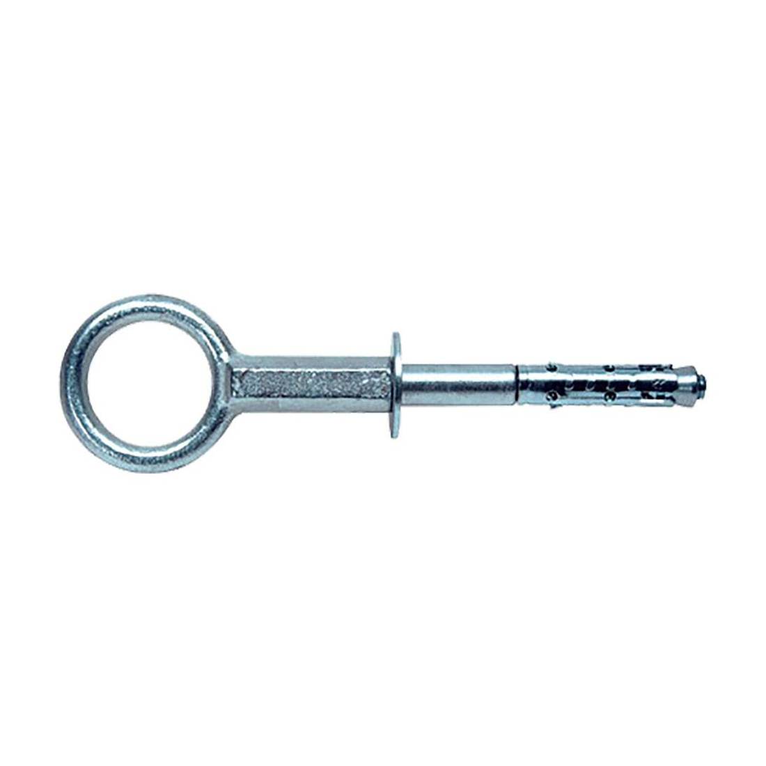 In acciaio zincato, diametro interno golfare mm 50 con gambo esagonale per chiave 21. Tassello foro mm 18. Per applicazioni su materiali compatti (pietra, calcestruzzo, mattone pieno) e per collegamento diretto dei ponteggi appoggiati a terra. Completo di tassello (codice 440496).