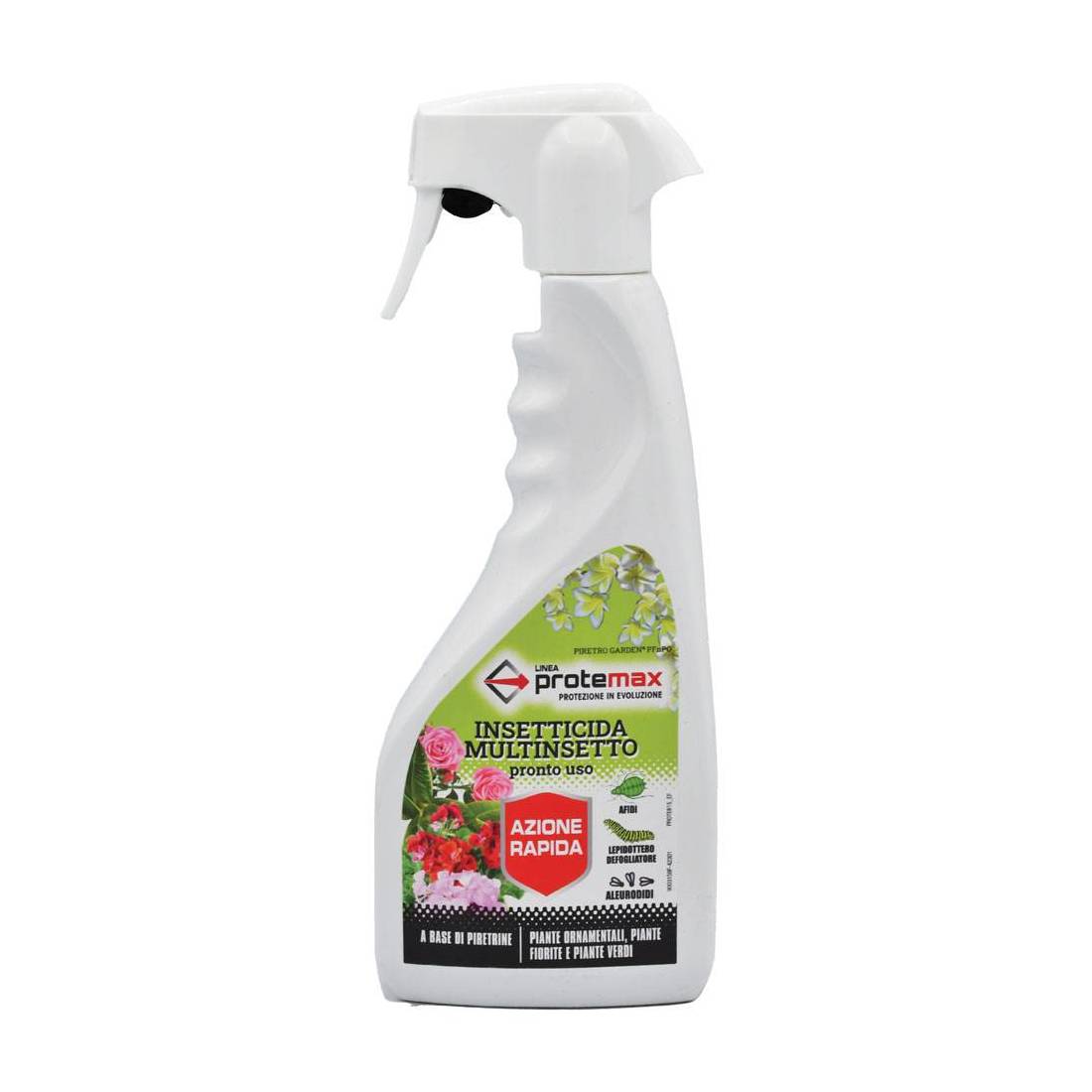 Pronto all'uso, a base di piretrine pure. Indicato per uso su piante fiorite (rose, azalee, begonie, gerani, ortensie, oleandri), piante verdi (ficus, dracaena, felce), piante ornamentali in genere coltivate anche in appartamento. Per insetti come afidi, mosca bianca, lepidotteri. Azione rapida. Registrazione Ministero della Salute n.10816 del 11-04-2001. In flacone con nebulizzatore.