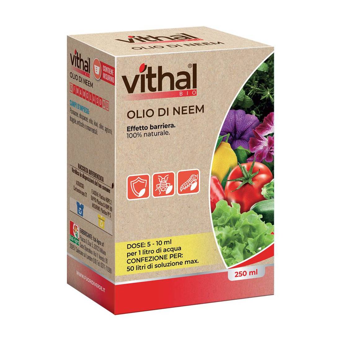 Liquido oleoso puro composto da 100% olio di neem. Concime organico totalmente naturale azotato, utilizzato in maniera preventiva contro la presenza di parassiti e come rivitalizzante per potenziare la resistenza di colture frutticole, orticole, aromatiche ed ornamentali. La sua composizione speciale è frutto della spremitura meccanica dei frutti della pianta di Neem. Una volta assimilato, il prodotto penetra rapidamente rapidamente nella pianta, conferisce energia e forza, migliora la salute e svolge un'azione repellente verso insetti e malattie fungine (afidi, cocciniglie, oidio, ticchiolatura, ruggine, ecc.). Rinvigorisce e protegge il fogliame e se spruzzato sul terreno, funge da riequilibratore della microflora. Utilizzo: per via fogliare interventi ogini 8-12 giorni, fertirrigazione 2-3 interventi durante l'arco vegetativo. Consentito in agricoltura biologica. In flacone.