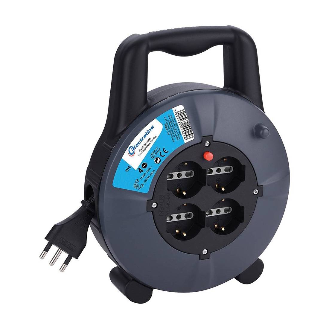 Prese: 4x2P + T 16A bipasso + 4 schuko. Spina: 2P + T 16A. Cavo: mmq 3x1,5. Con protezione termica.Certificato Kema Kema