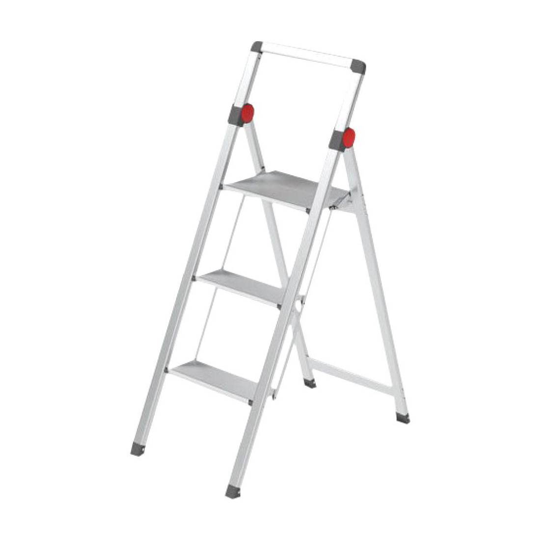 In alluminio anodizzato. Leggerissimo, con piedini antiscivolo zigrinati, piattaforma in alluminio. Parapetto alto 40 cm. Superficie gradini da 10 cm di larghezza. Fissaggio gradini con rivetti. Conforme alle norme vigenti EN131 D.Lgs 81/08. Portata Kg 150.
