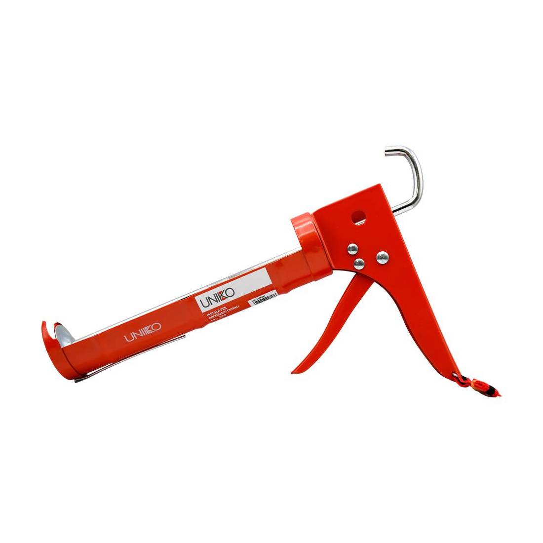 Realizzata in lamiera verniciata e con avanzamento a frizione, consente un'erogazione continua e controllata del materiale, rendendola pratica ed essenziale per l'applicazione di sigillanti in cartuccia. Con un rapporto di spinta 10:1 e una potenza superiore a 1500N, offre buone prestazioni per materiali a bassa e media viscosità. Il corpo della pistola ha uno spessore di 1,8 mm, mentre l'asta di spinta da 7,9 mm assicura stabilità e precisione nell'erogazione. Per cartucce da 310 ml.