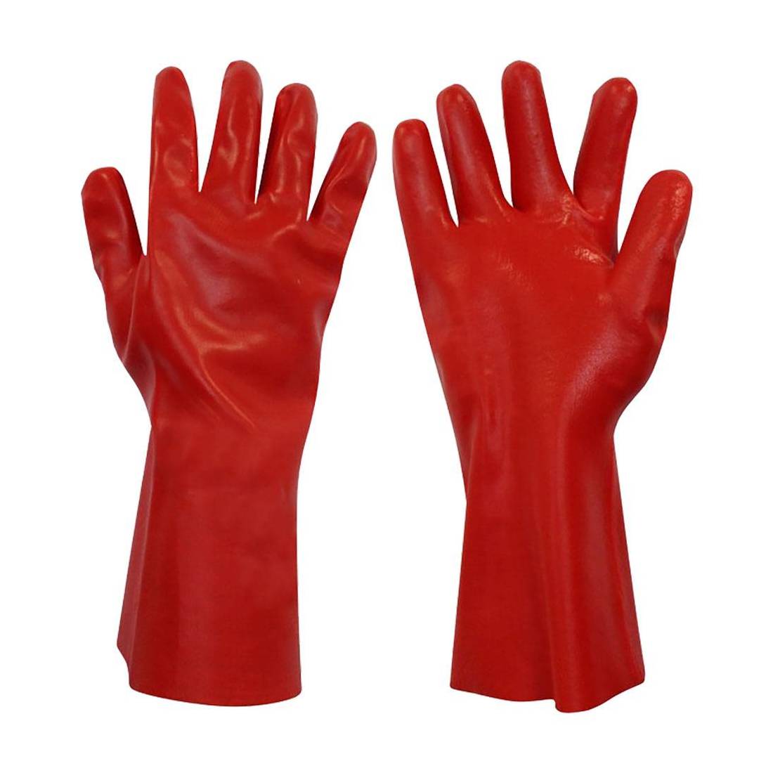 Foderato internamente in cotone. Ottima sensibilità. Resistenti ad acidi e agenti chimici, detersivi, detergenti, grassi e oli, ottimi nel settore edile. A norma EN388:2016, CE 0498, EN ISO 374-1:2016. Lunghezza 35 cm, colore rosso. In busta appendibile.