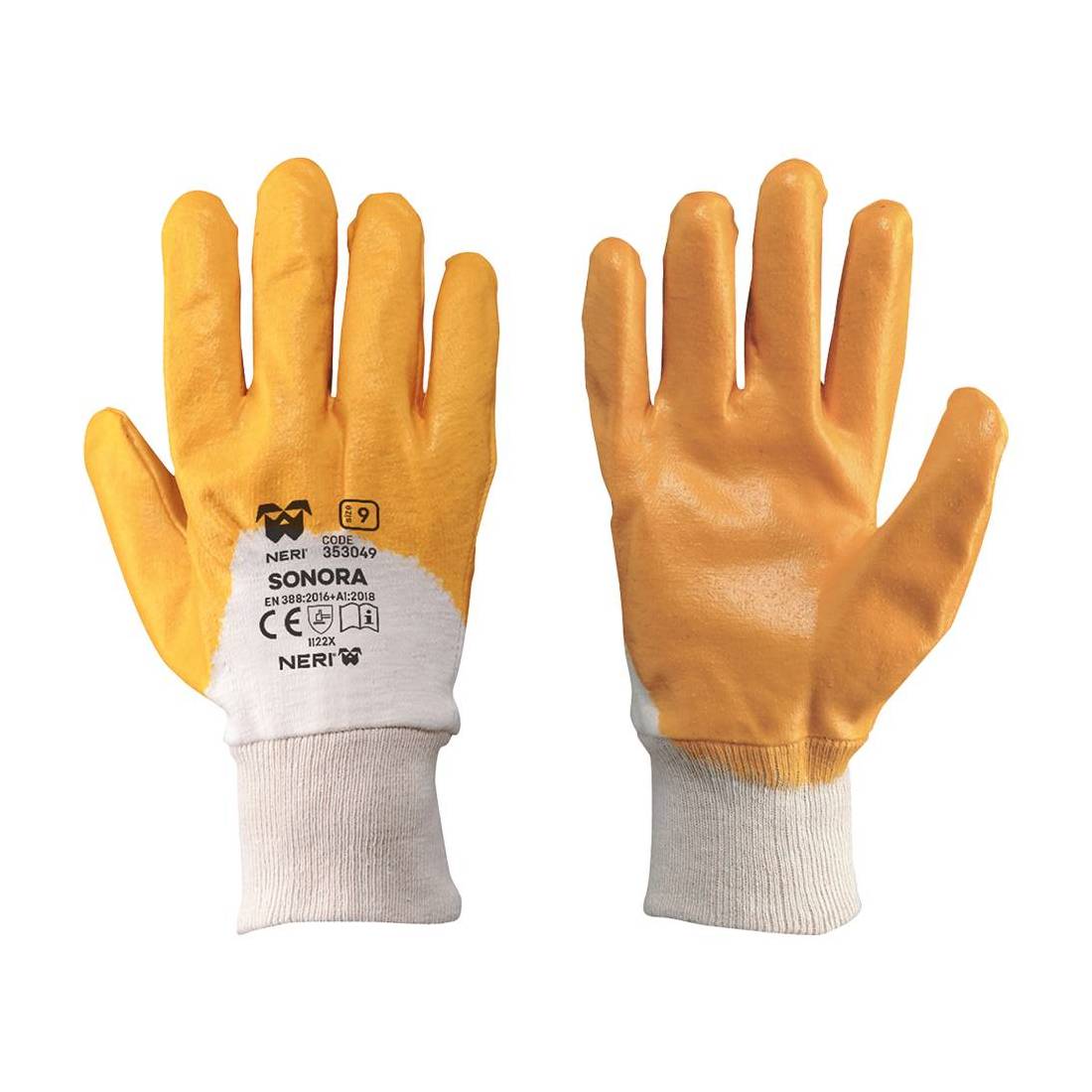 Ultraleggeri, di spessore ridotto, in tessuto jersey di cotone impregnato in NBR. La lavorazione jersey agevola l'assorbimento del sudore, mentre la spalmatura NBR offre una buona resistenza all abrasione, a oli e/o grassi, solventi, idrocarburi e derivati. Polsini in maglia, dorso aerato. Consigliati nel settore edile, agricoltura, lavorazione lamierati. Ottimi al contatto con olio, acqua, vernici, gasolio ecc. Imbustati sciolti.