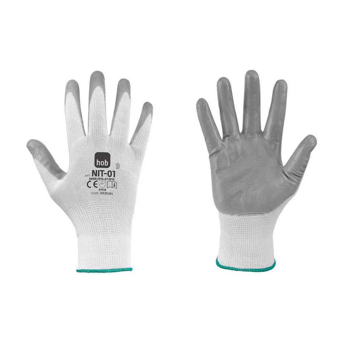 GUANTI NITRILE/POLIESTERE 'NIT-01 HOB SPECIAL' Tg. 9 - colore bianco/grigio