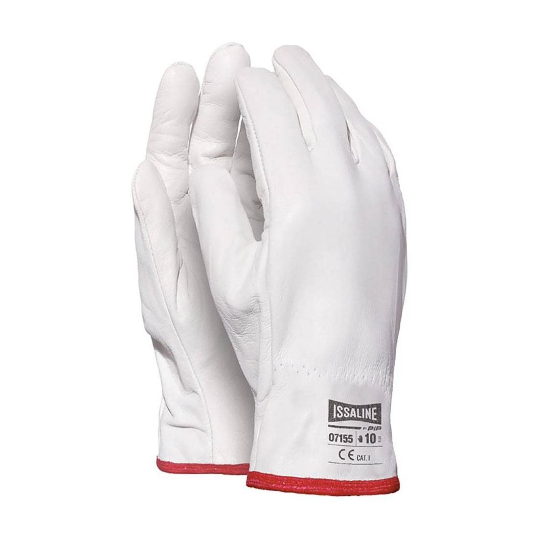 Palmo e dorso in pieno fiore di colore bianco. Orlato al fondo, interno foderato in flanella. Buona sensibilita', ottimi nella stagione invernale per condurre automezzi, muletti. Marcatura CE, categoria I, EN 420:2003+A1:2009. Imbustati sciolti.