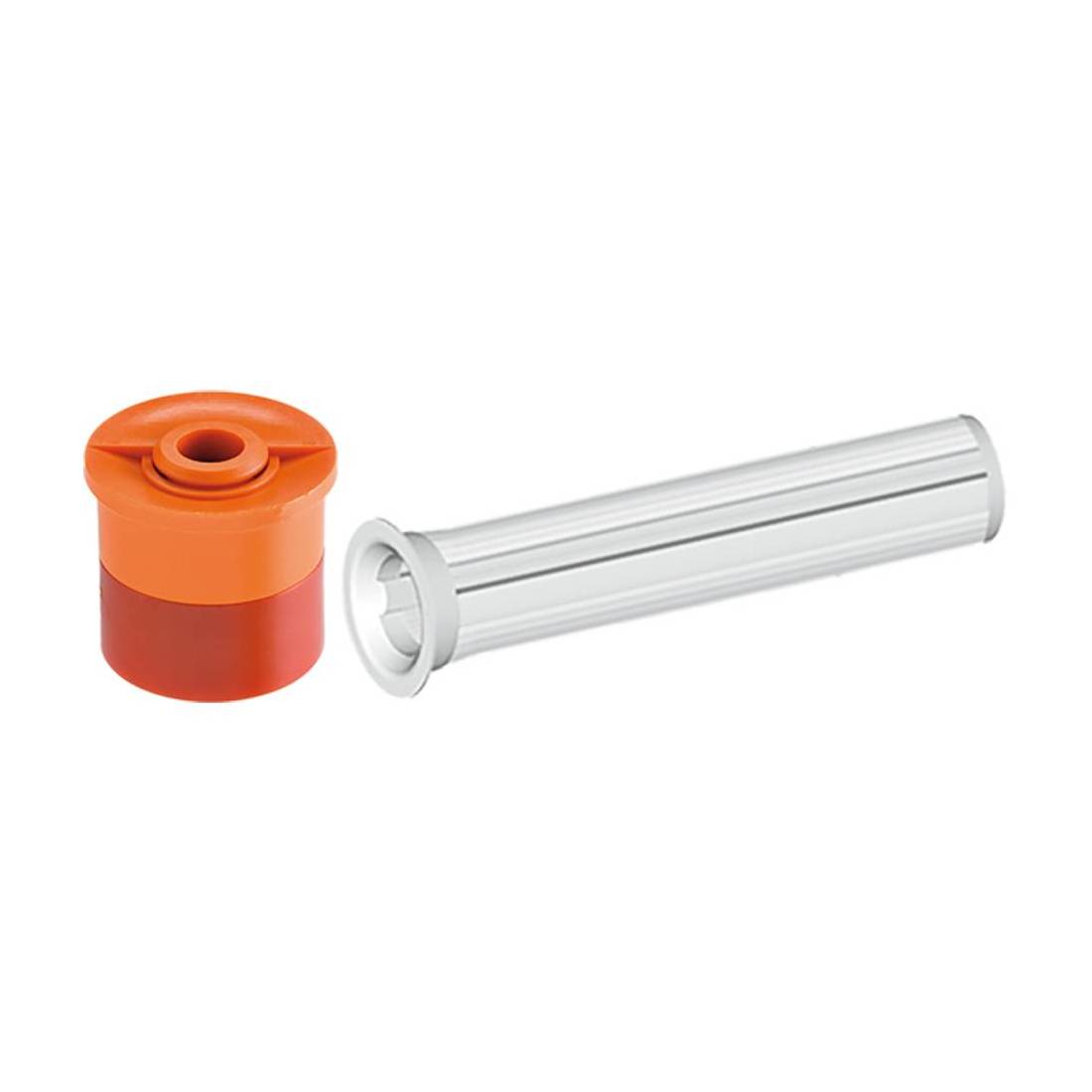 In abs antiurto, completa di filtro. Vite in acciaio inox di regolazione gittata. Filetto femmina universale. Per articolo '90055'.