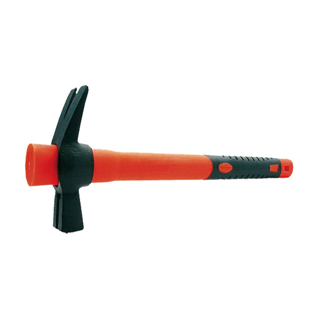 Testa in acciaio temprato. Con manico in fibra, impugnatura antiscivolo.