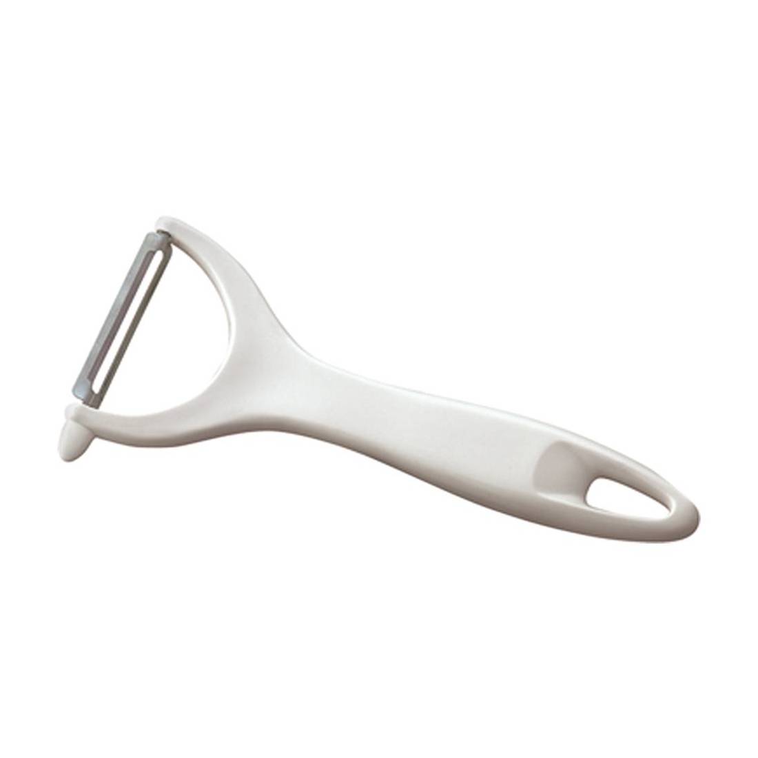 In acciaio inox di prima qualità e plastica bianca resistente. La lama mobile segue i contorni e riduce lo scarto, il taglio ampio evita che la buccia resti intrappolata. La punta all'estremità è capace di eliminare eventuali difetti di pelatura.