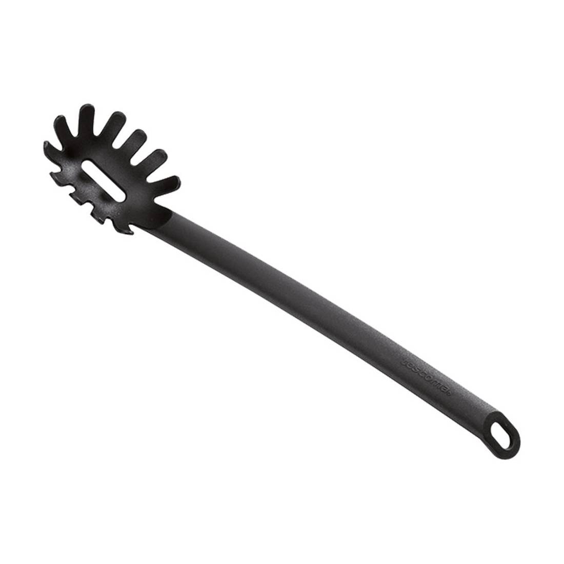 In nylon. Particolarmente indicato per pentole con rivestimento anti-aderente. Non assorbe odori, è particolarmente resistente all'attacco degli acidi alimentari.