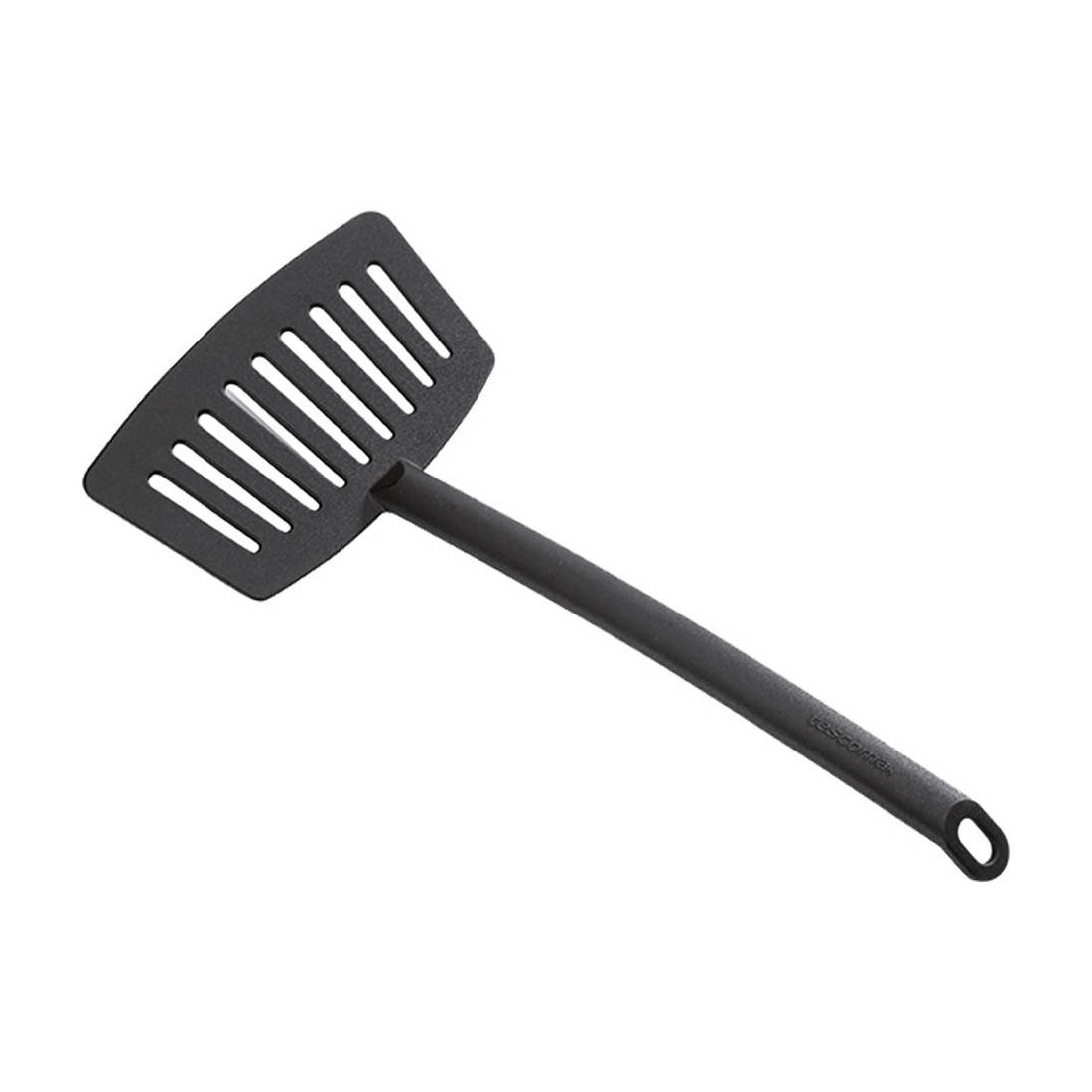 In nylon. Particolarmente indicata per pentole con rivestimento anti-aderente. Non assorbe odori, è particolarmente resistente all'attacco degli acidi alimentari. Tipo largo.